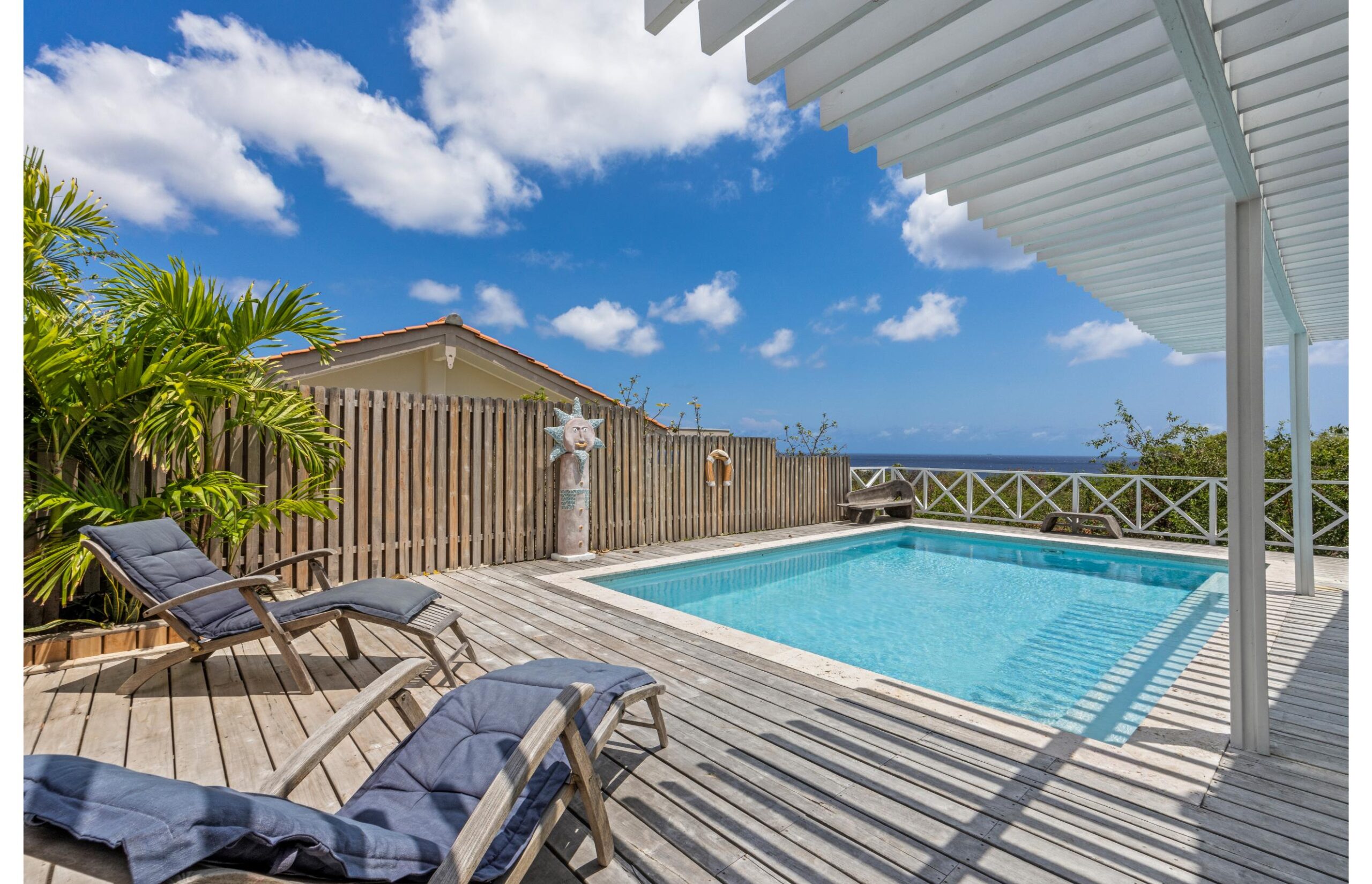 Stap binnen in onze smaakvol ingerichte luxe villa, een weelderige toevluchtsoord waar luxe harmonieus samengaat met een warme huiselijke sfeer. Hier geniet je van een oase van rust, omringd door de betoverende geluiden van de natuur en op slechts een korte loopafstand van de Caribische Zee. Het adembenemende zeezicht vormt het decor van deze exclusieve villa, waardoor elke dag een spektakel van natuurlijke schoonheid wordt.