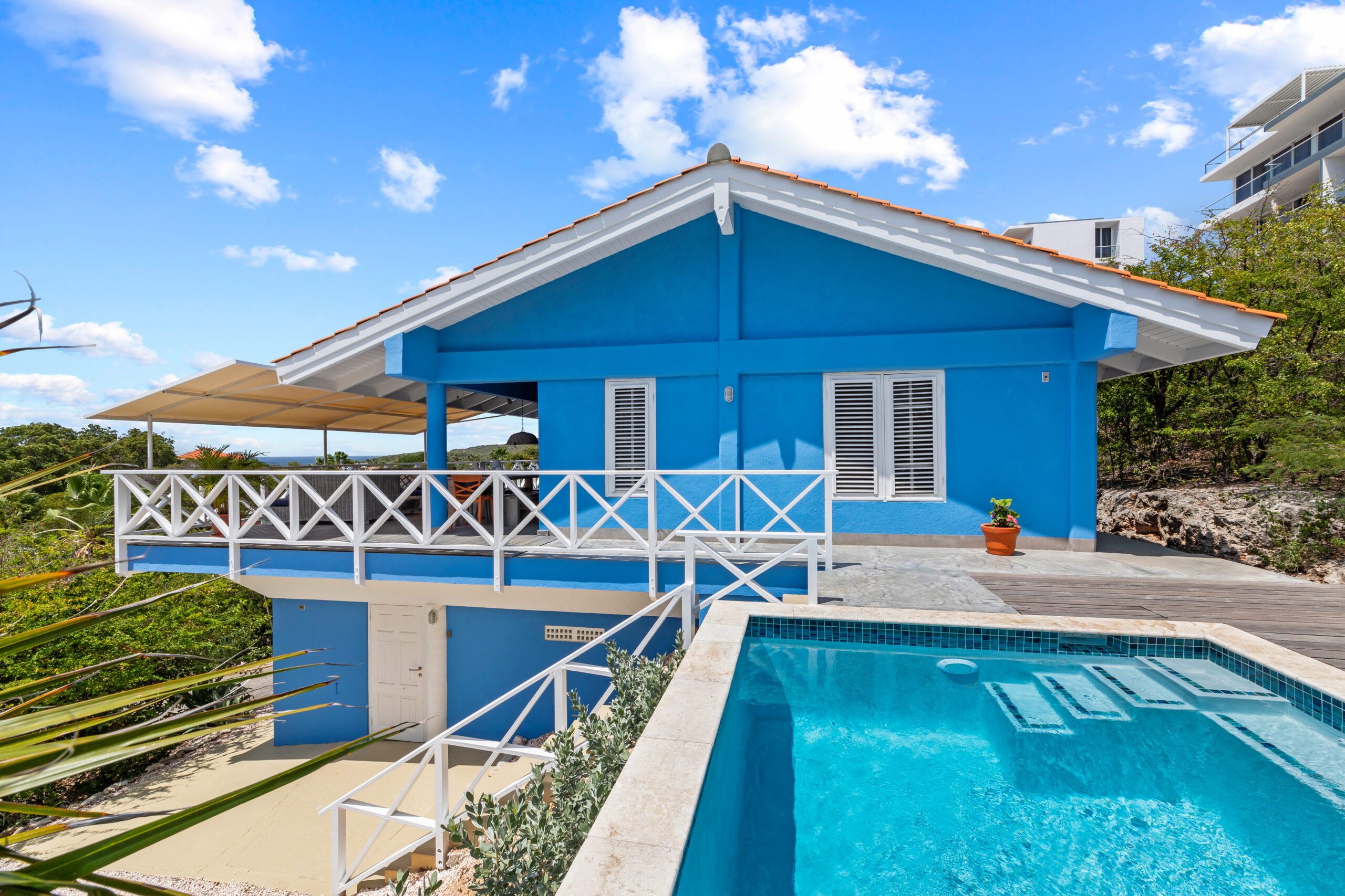Deze vrijstaande, recent gerenoveerde Caribische villa ligt heerlijk op de wind en biedt een adembenemend vrij uitzicht over de Caribische zee. De smaakvolle inrichting, het royale terras met grote eettafel en loungeset, én het nieuwe privézwembad maken dit de ideale plek om volledig tot rust te komen.