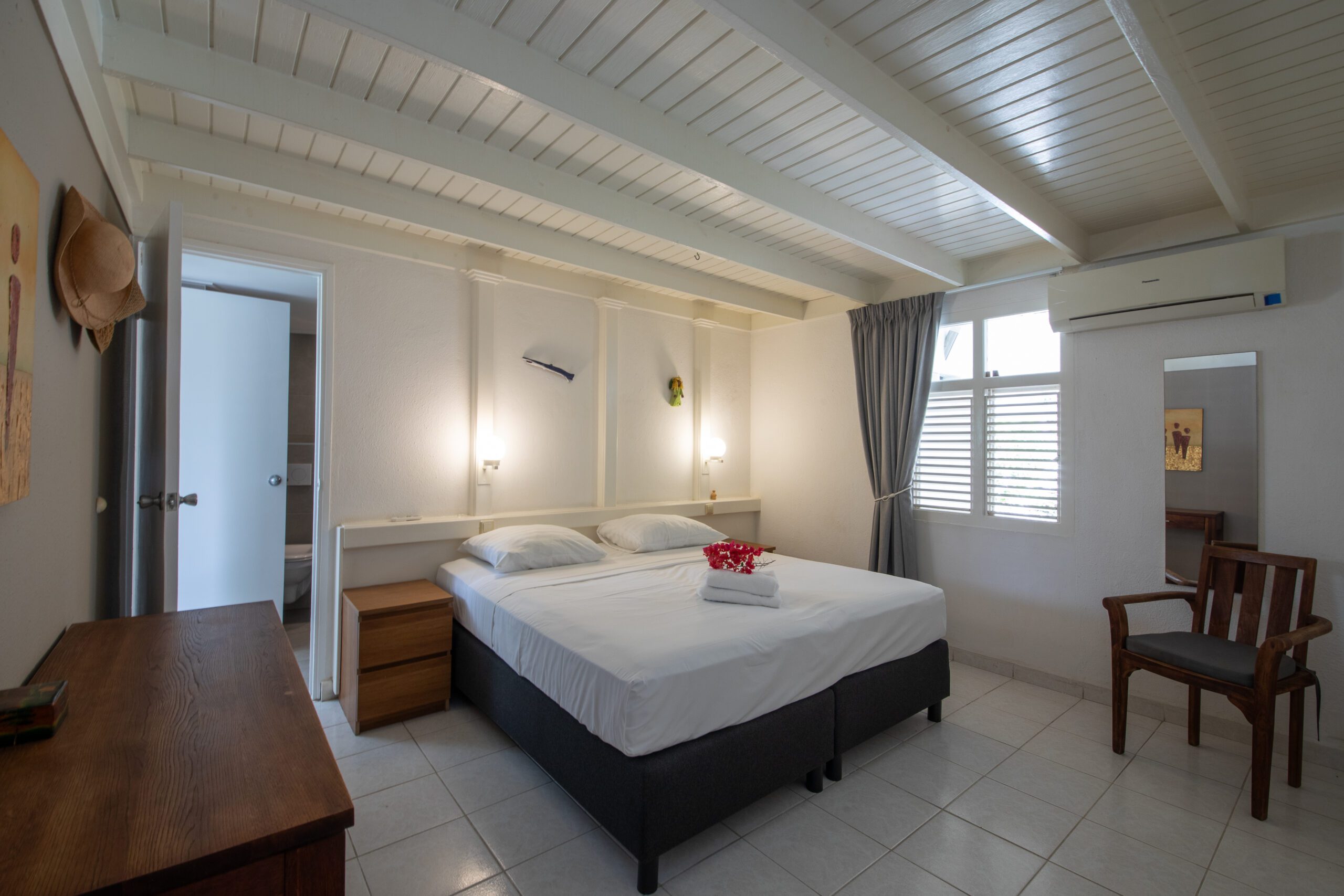 In de avond komen de muggen tevoorschijn, maar dat is overal op het eiland. Dus gewoon goed insmeren en ’s nachts de klamboes (zijn aanwezig) en/of airco gebruiken.