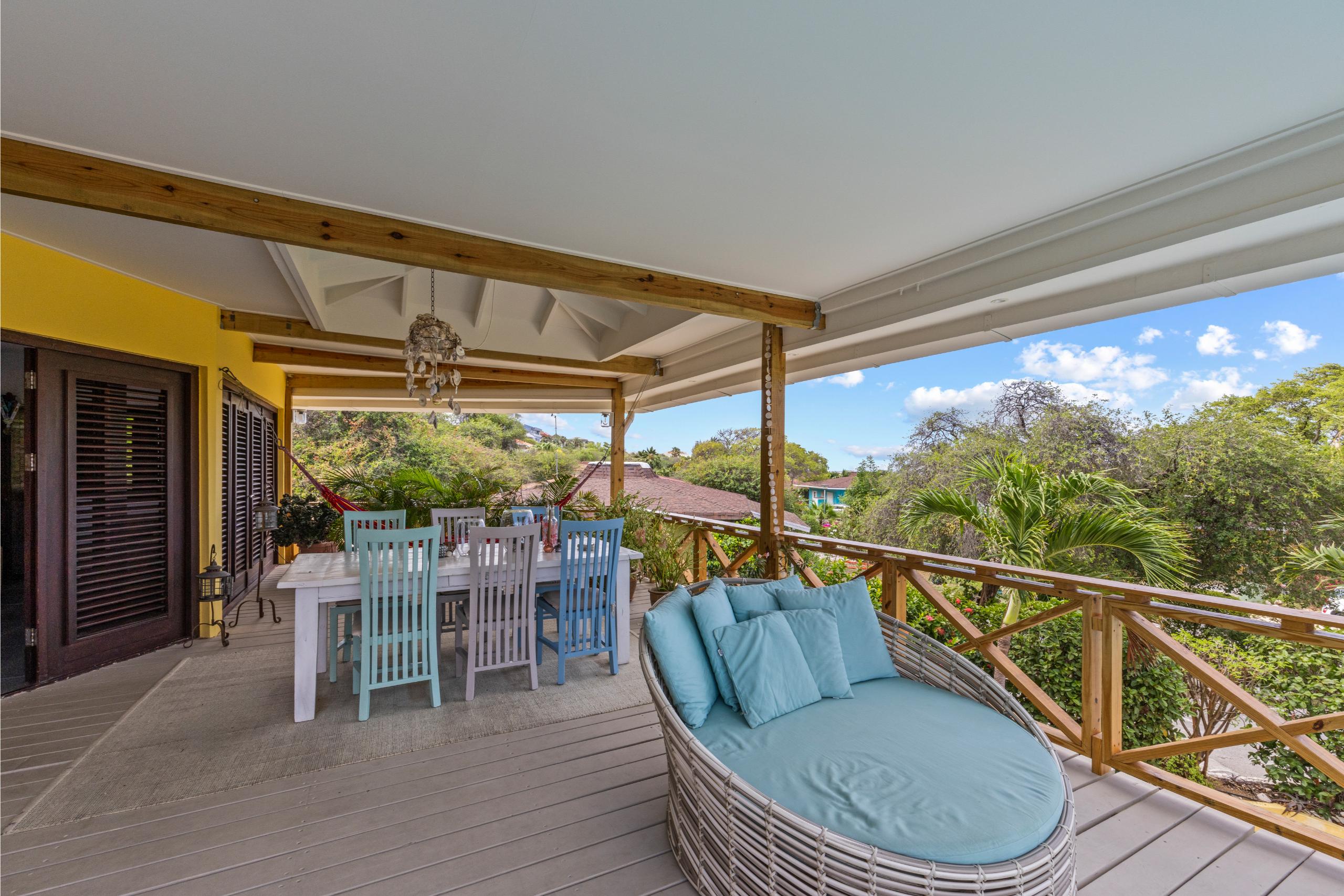 De grote veranda nodigt uit tot sociale samenzijn met diverse zitjes, waar je kunt genieten van de prachtige omgeving en het rustgevende zicht op zee. Of je nu ontspant in het mooie privézwembad, dineert op de veranda met een spectaculair zeezicht, deze villa biedt een unieke combinatie van luxe en comfort in een tropisch paradijs. Hier wordt elke dag een onvergetelijke ervaring, en elk moment een symfonie van rust en schoonheid.