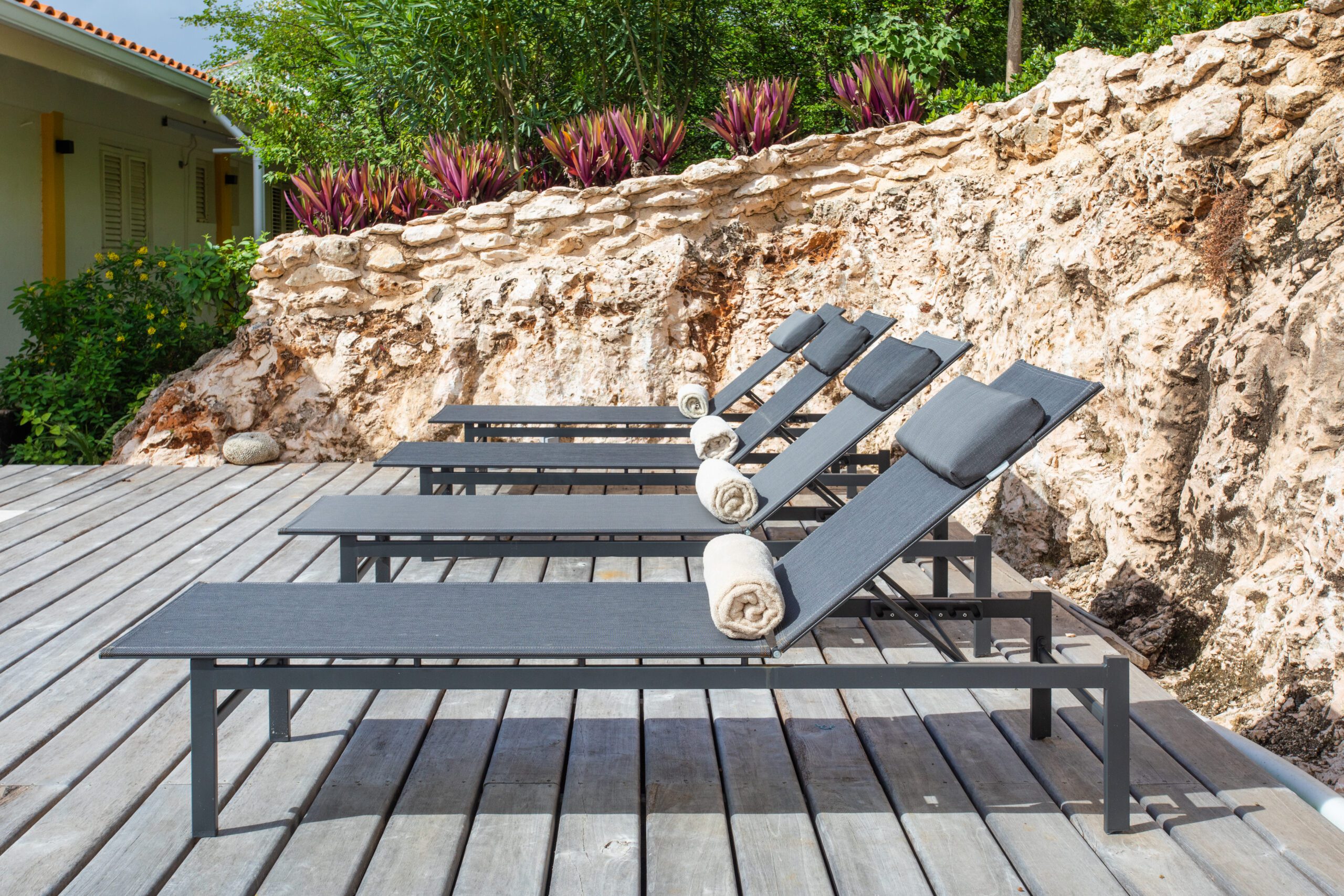 Vom großen privaten Infinity-Pool aus können Sie einen spektakulären Meerblick genießen, der jeden Schwung zu einem Erlebnis von unvergleichlichem Luxus macht. Die großzügige Sonnenterrasse bietet den perfekten Ort zum Entspannen, mit einer erfrischenden Außendusche, um sich nach einem belebenden Tauchgang zu erneuern. Unter dem natürlichen Blätterdach von Bäumen und Pflanzen finden Sie eine reizvolle schattige Terrasse, auf der Sie der Sonne entfliehen und sich in einem guten Buch oder einem entspannten Gespräch verlieren können.