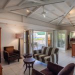 Die geräumige Veranda lädt zum Entspannen und geselligen Beisammensein ein, wo Sie die erfrischende Brise und den beeindruckenden Blick auf den Ozean genießen können. Die gemütliche Einrichtung der Villa schafft eine komfortable und einladende Atmosphäre, während die Klimaanlage im Wohnzimmer auch an den heißesten Tagen für eine angenehme Temperatur sorgt.