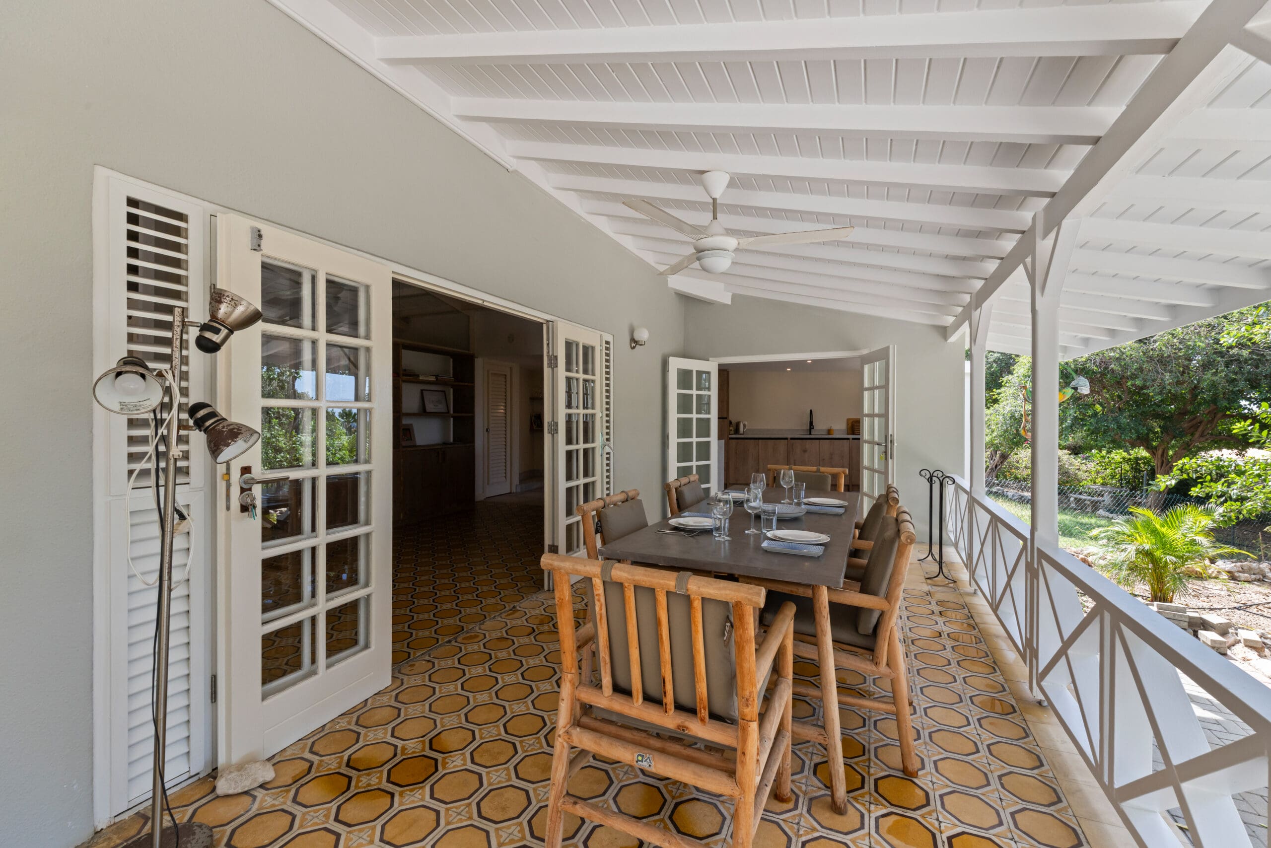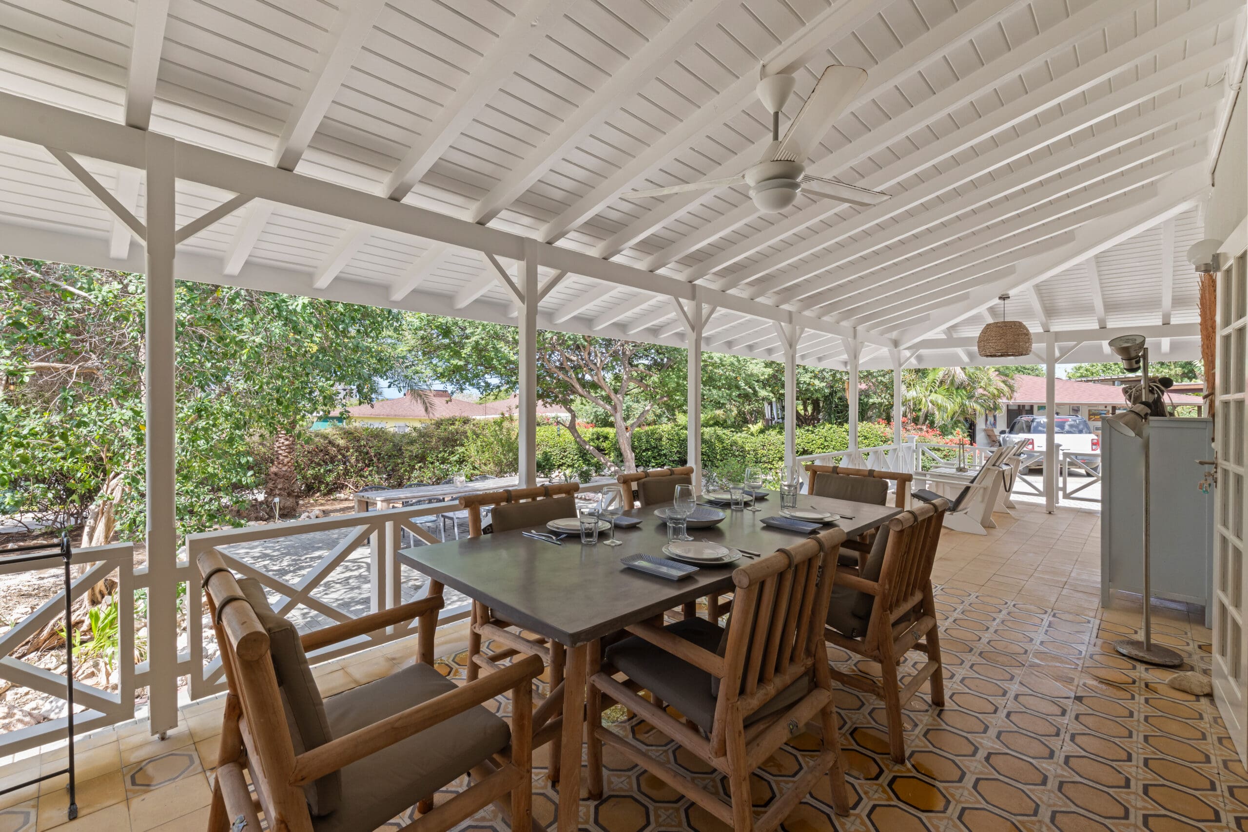 Der Bungalow lädt zu besinnlichen Momenten der Ruhe ein, bei denen jedes Detail sorgfältig ausgewählt wurde, um eine warme und einladende Atmosphäre zu schaffen. Die große Veranda mit verschiedenen Sitzgelegenheiten ist ein perfekter Ort, um die ruhige Atmosphäre und die tropischen Geräusche um Sie herum zu genießen. Lassen Sie sich von den beruhigenden Klängen der Natur verzaubern, während Sie in einem der bequemen Sitzgelegenheiten entspannen.