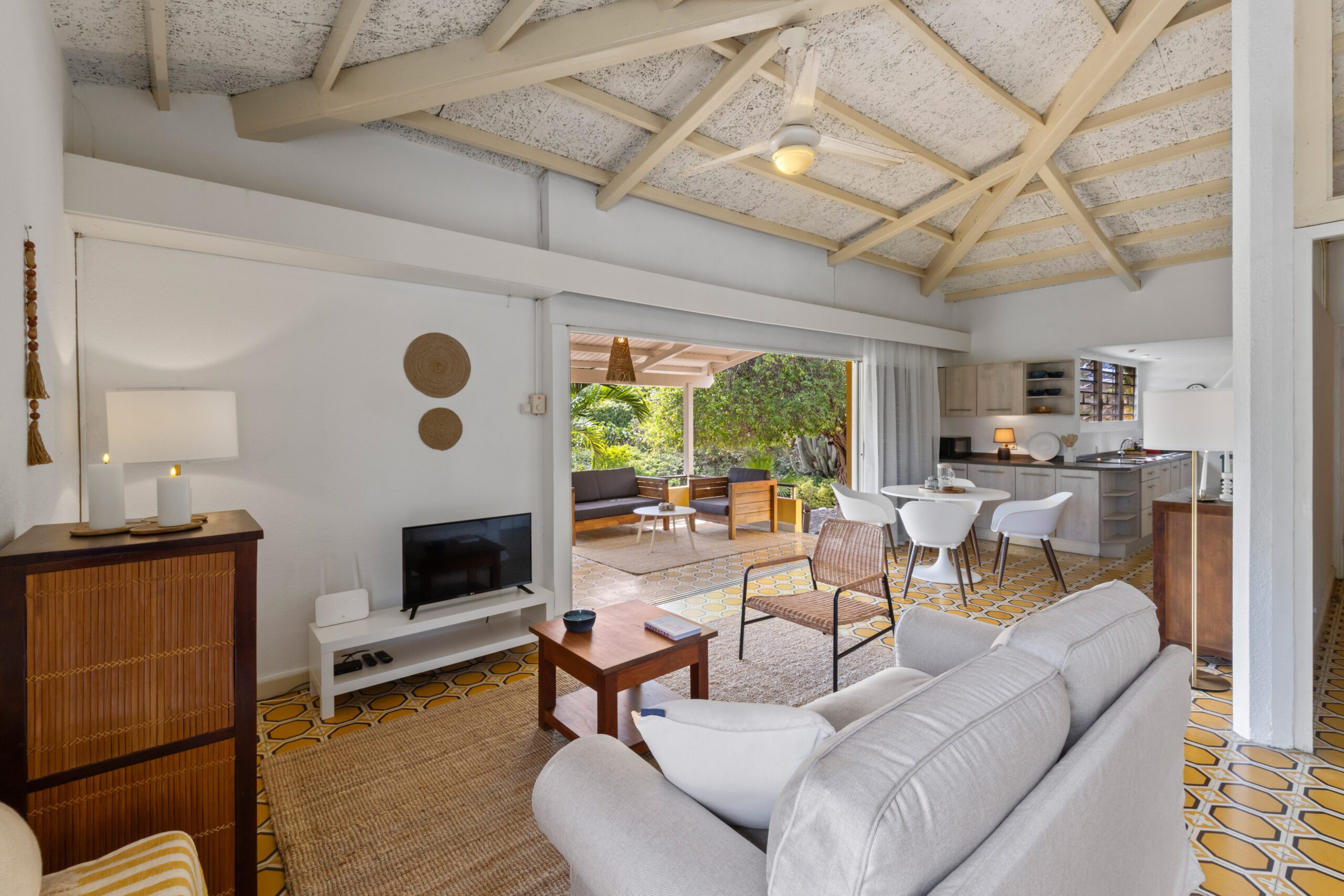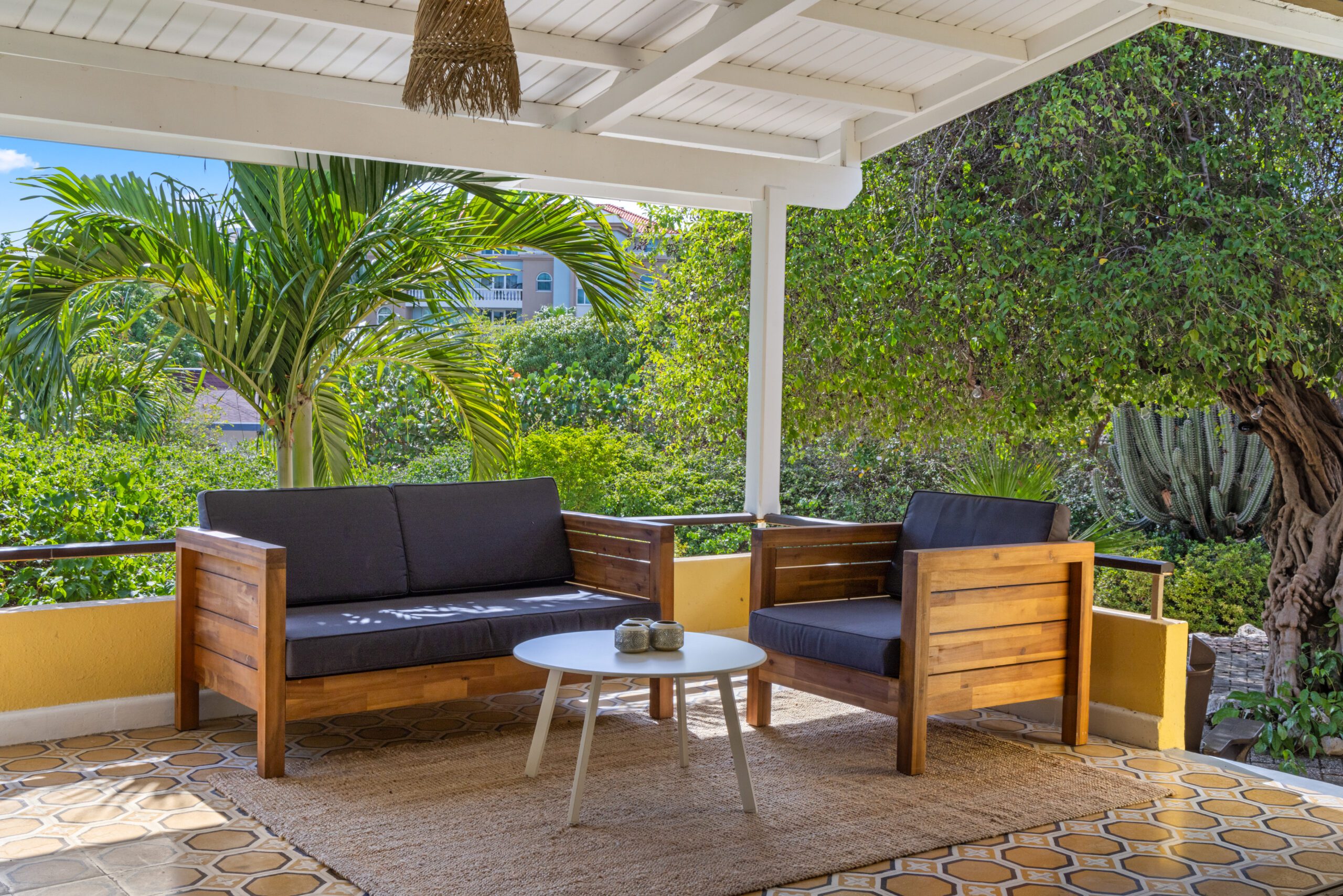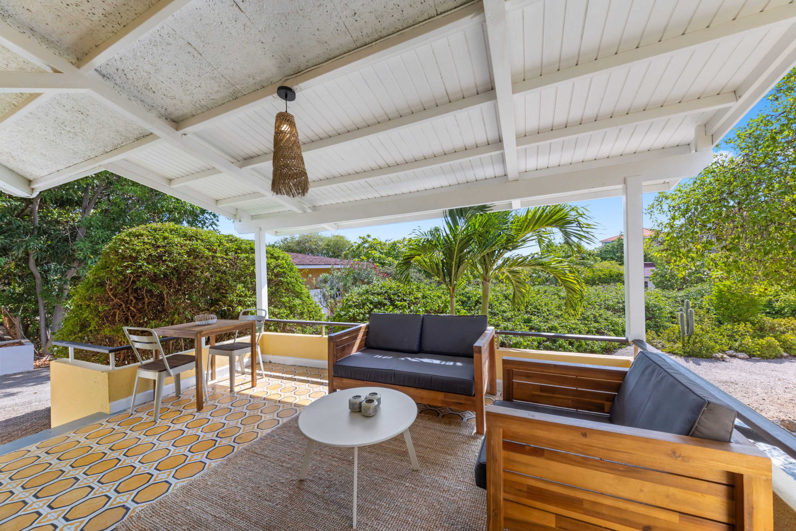 Erleben Sie das ultimative Urlaubsgefühl in unserem charmanten Bungalow, eingebettet in ein tropisches Paradies. Von der Veranda aus blicken Sie auf einen wunderschön angelegten Garten mit farbenfrohen Pflanzen und majestätischen Bäumen. Hier genießen Sie absolute Privatsphäre, umgeben vom beruhigenden Gesang tropischer Vögel.