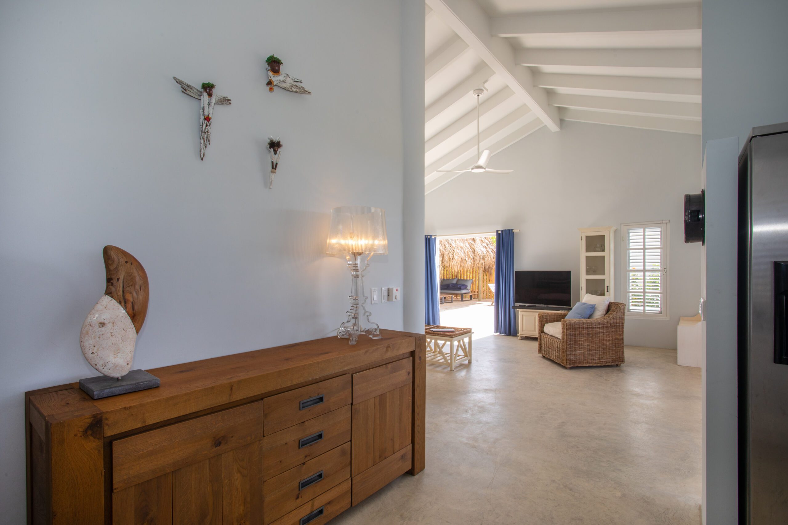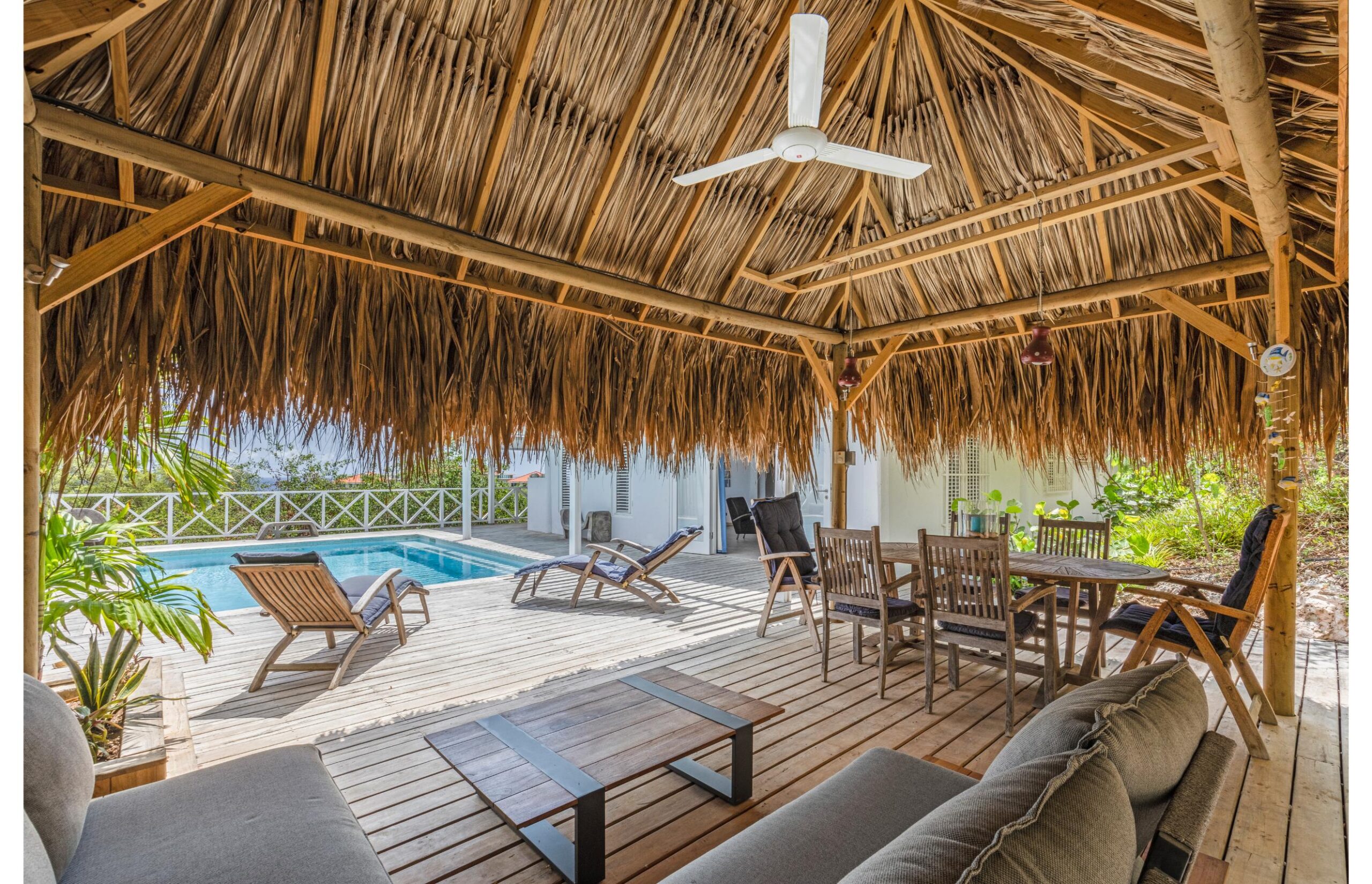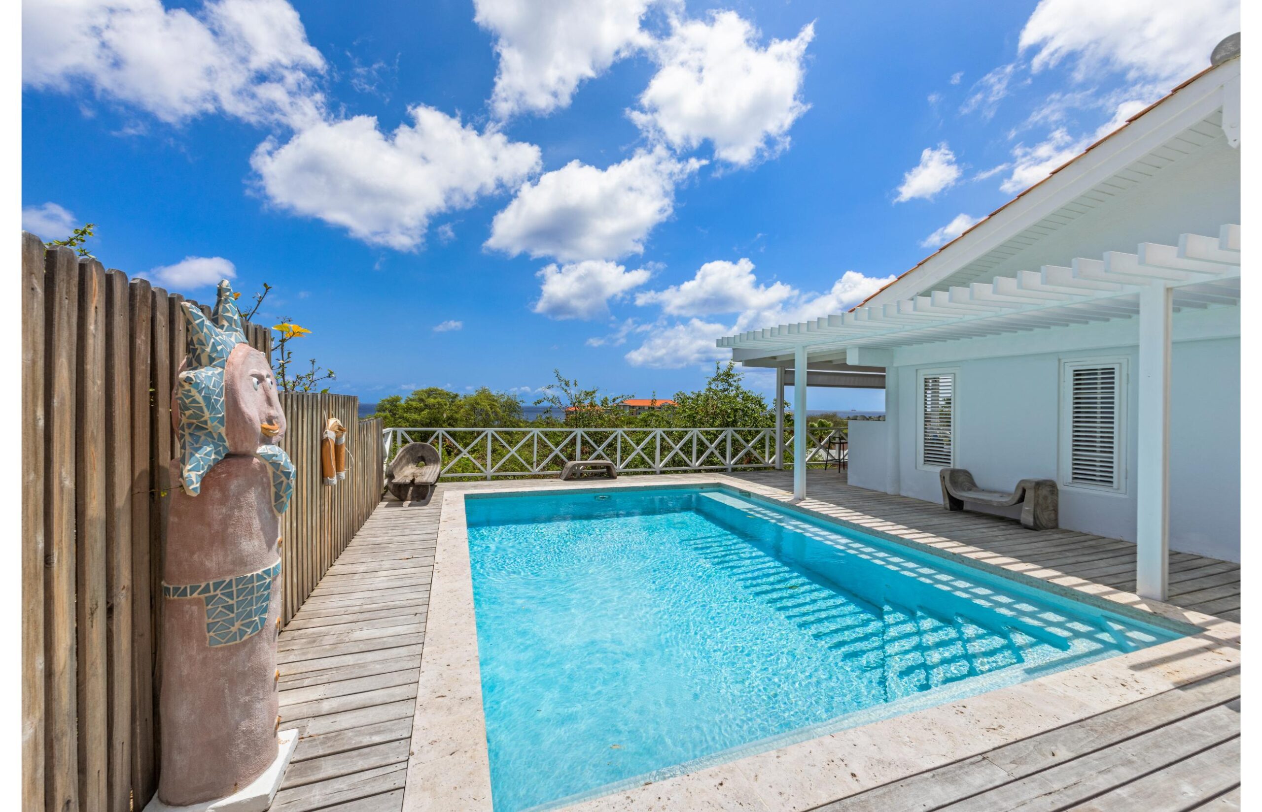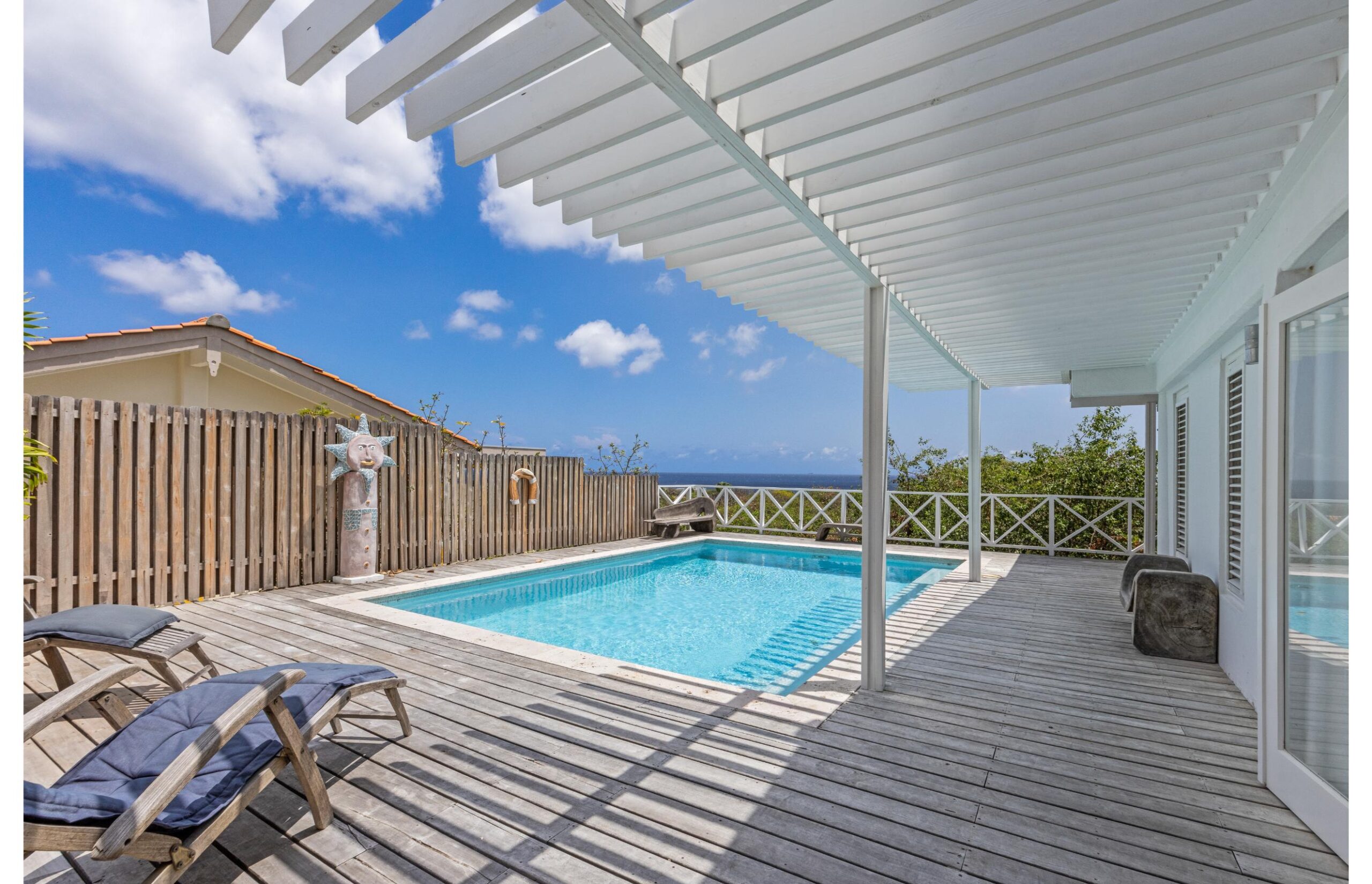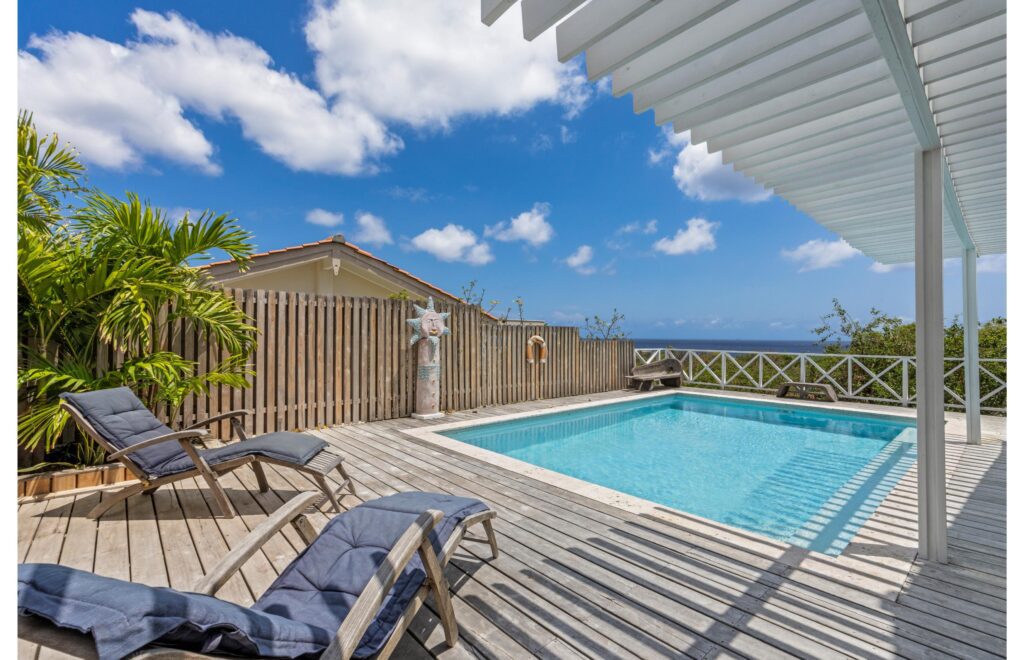 Enter our tastefully decorated luxury villa, a lush retreat where luxury harmoniously blends with a warm homely atmosphere. Here, you can indulge in an oasis of tranquility, surrounded by the enchanting sounds of nature and just a short walk from the Caribbean Sea. The breathtaking sea view sets the stage for this exclusive villa, turning each day into a spectacle of natural beauty.