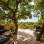 From the large private infinity pool, you can indulge in a spectacular sea view, turning every swim into an experience of unparalleled luxury. The spacious sun terrace provides the perfect spot to relax, with an invigorating outdoor shower to refresh yourself after a revitalizing dip. Under the natural canopy of trees and foliage, you’ll find a delightful shaded terrace where you can escape the sun and lose yourself in a good book or a leisurely conversation.