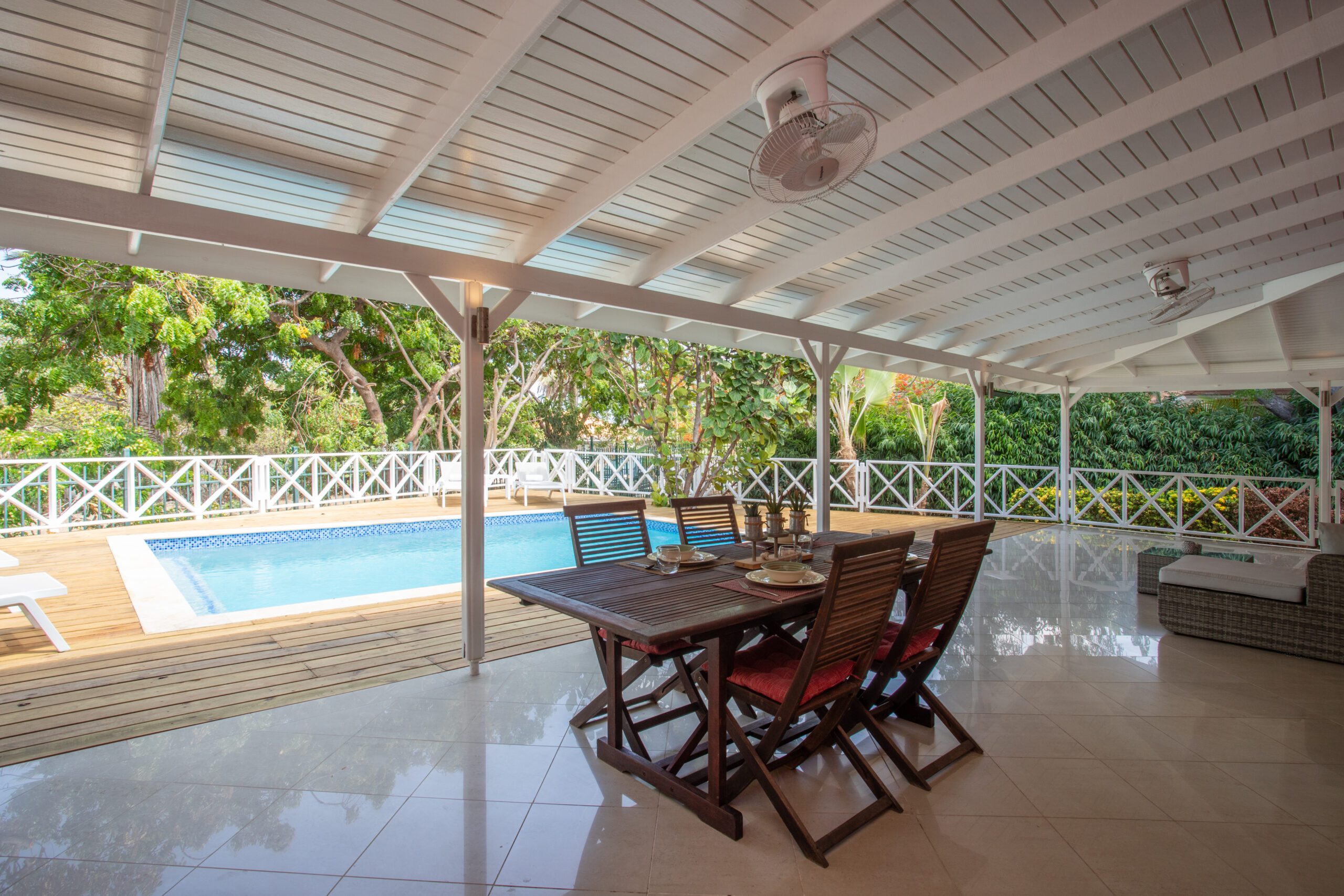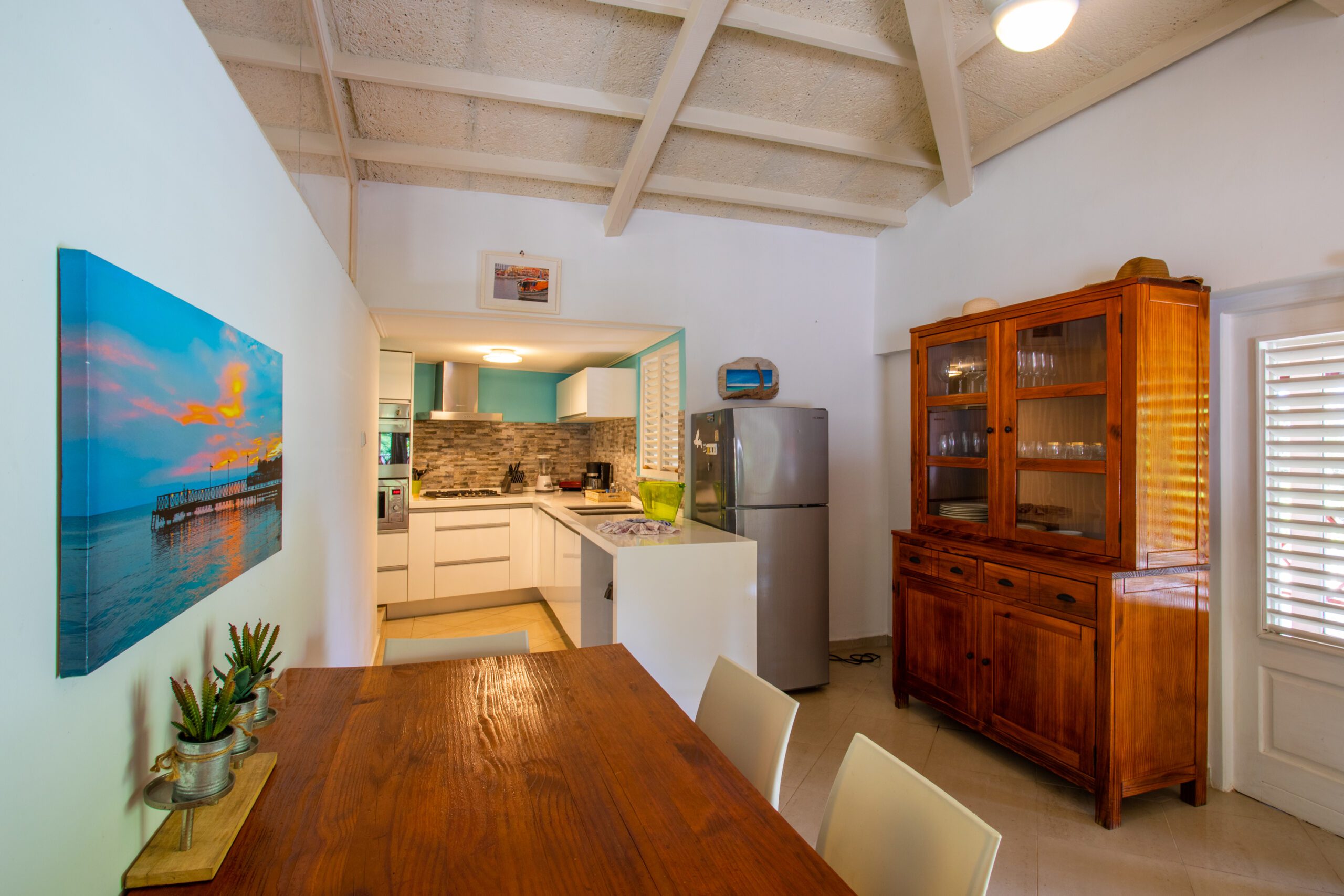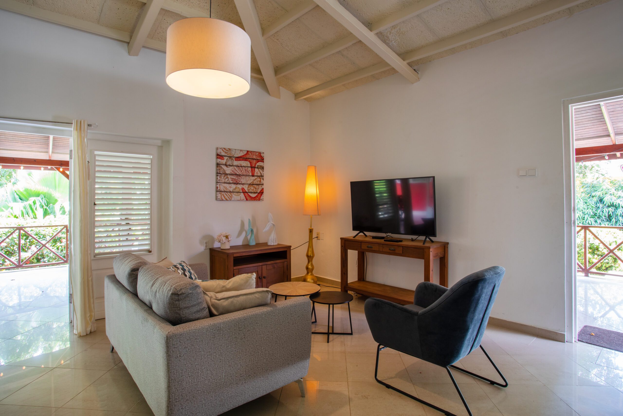 - Amenities: Tropical bungalow with swimming pool and ocean view, Smart TV, WiFi, Safe, Dishwasher, Microwave, Coffee machine, Kettle, Washing machine, Airconditioning bedrooms, Ceiling fan, Fridge freezer, Gas stove, Iron, Iron board, Laundry rack, Oven, Standing fan, Toaster, Tumble dryer, TV DE-FR-EN channels, TV NL channels, TV NL sport