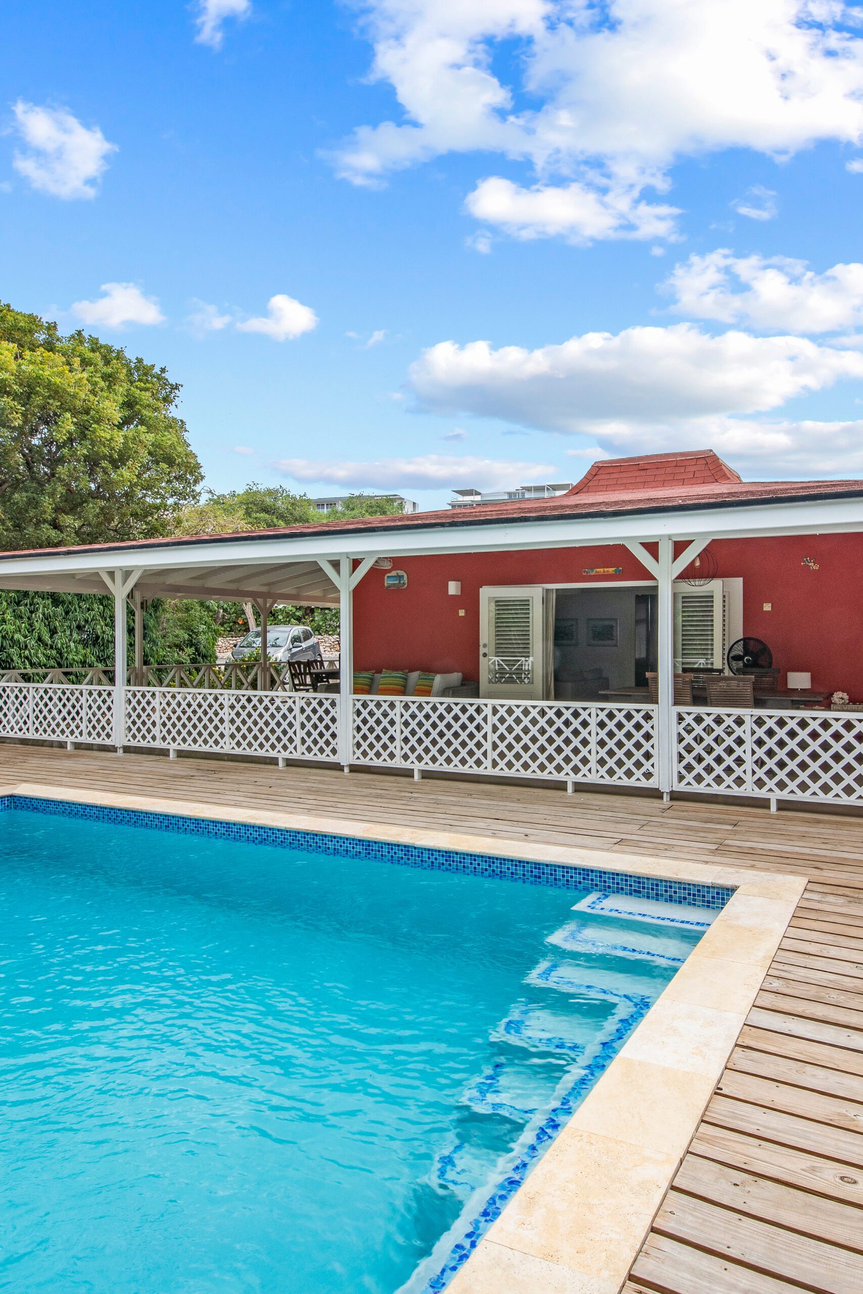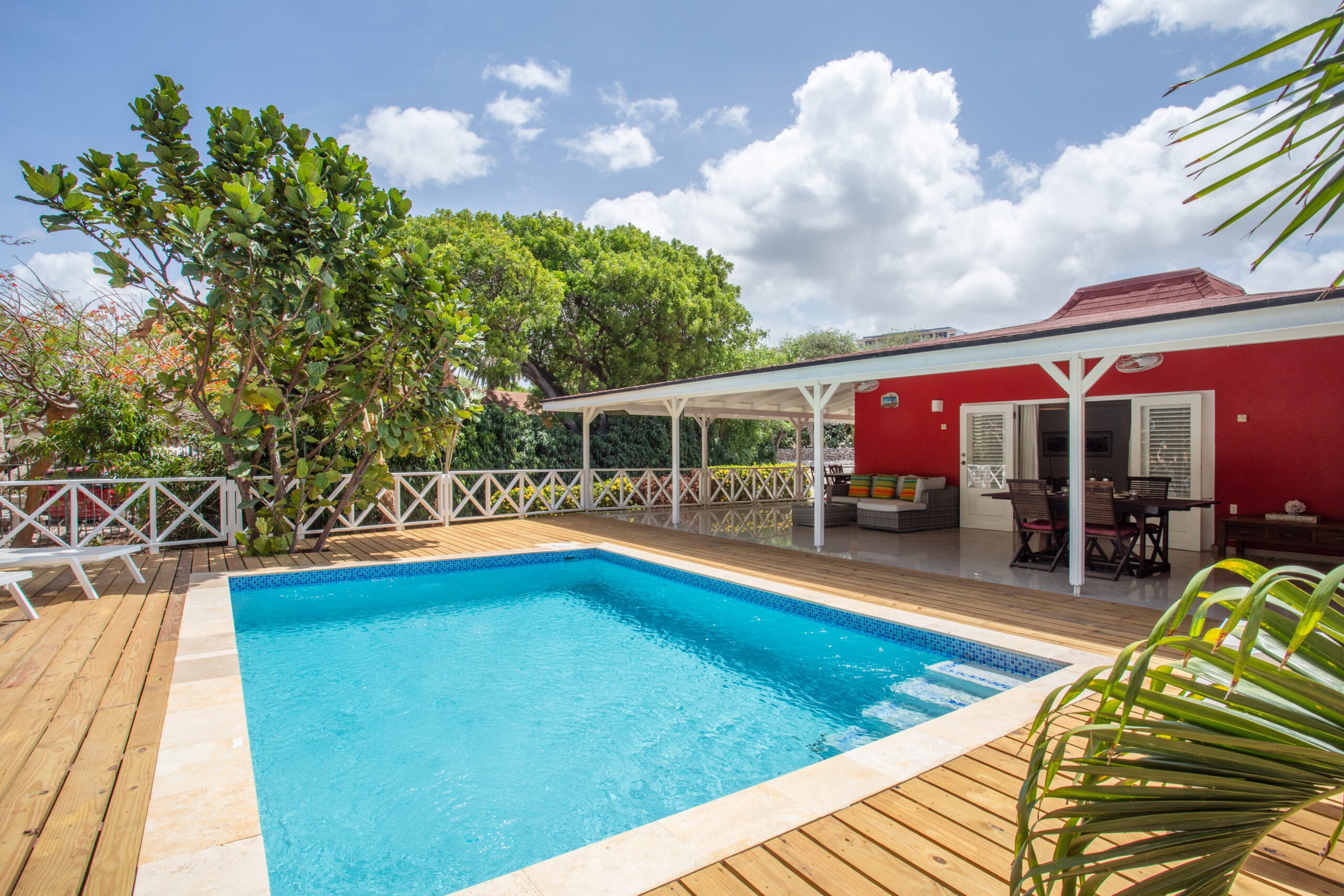 Additionally, our bungalow is conveniently located near the historic center of Willemstad, allowing you to explore colorful streets, historical landmarks, and immerse yourself in the local culture. Back at the bungalow, you’ll find a haven of relaxation, complete with a pool surrounded by a wooden deck and a spacious veranda where you can lounge and soak in the fresh sea breeze.