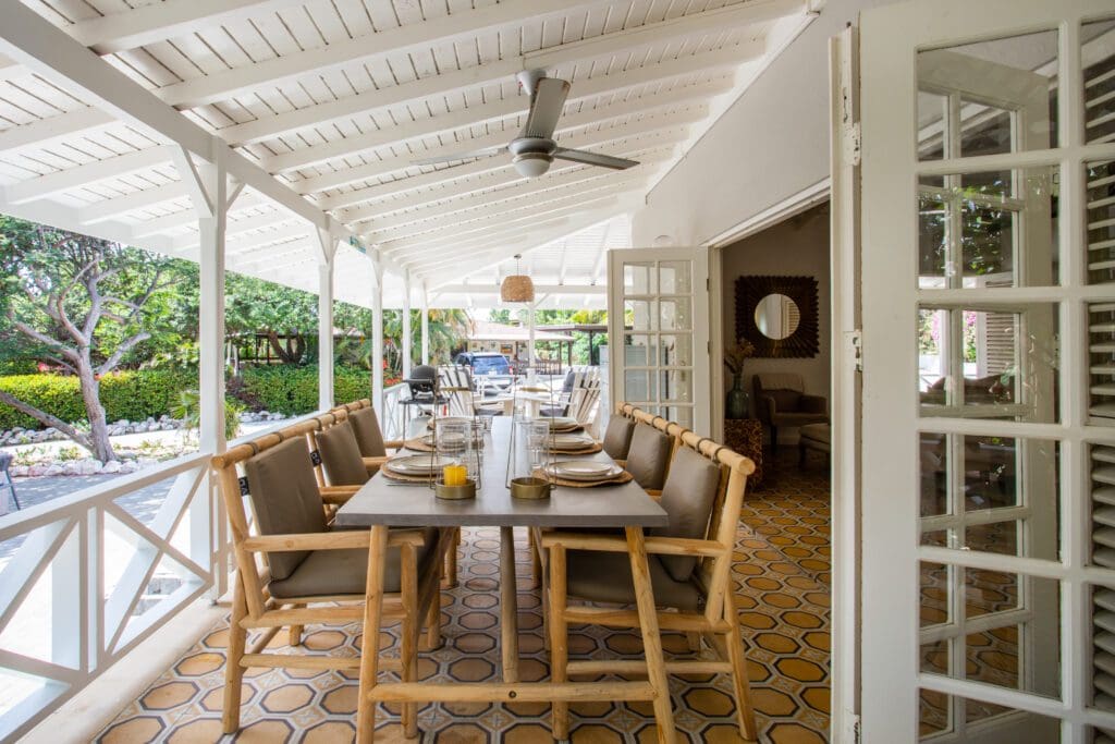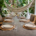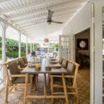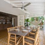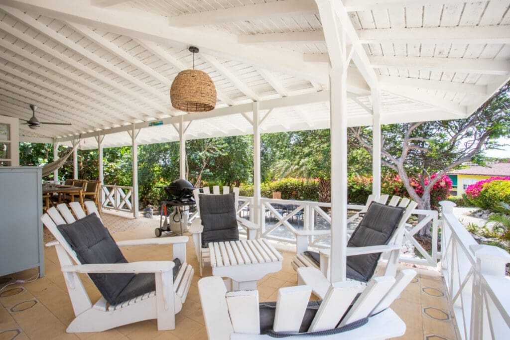 The bungalow invites you to serene moments of peace and reflection, where every detail has been carefully chosen to create a warm and inviting atmosphere. The large veranda with various seating areas is a perfect spot to savor the calm ambiance and tropical sounds around you. Let yourself be enchanted by the soothing sounds of nature as you relax in one of the comfortable seating areas.