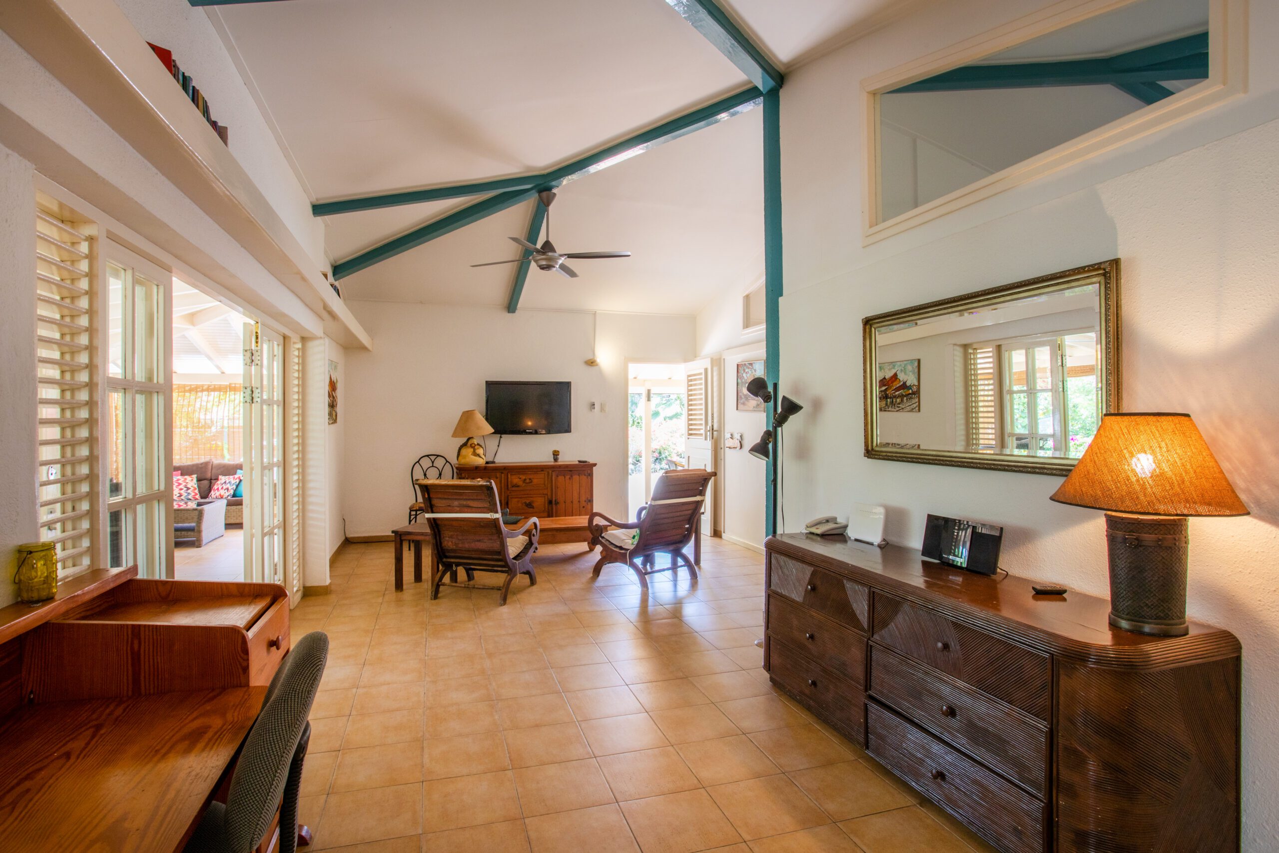Additionally, our bungalow conveniently sits close to the historic center of Willemstad, where you can get lost in enchanting streets, discover rich history, and immerse yourself in the vibrant culture of the island. Back at the bungalow, unwind on the very spacious veranda, ideal for admiring the beautiful surroundings and enjoying the warm Caribbean breeze. The large kitchen is equipped with all the modern amenities you need to prepare delicious meals and offers plenty of space for cooking together and enjoying cozy dinners. This spacious modern bungalow provides all the ingredients for an unforgettable holiday filled with peace, comfort, and enjoyment.