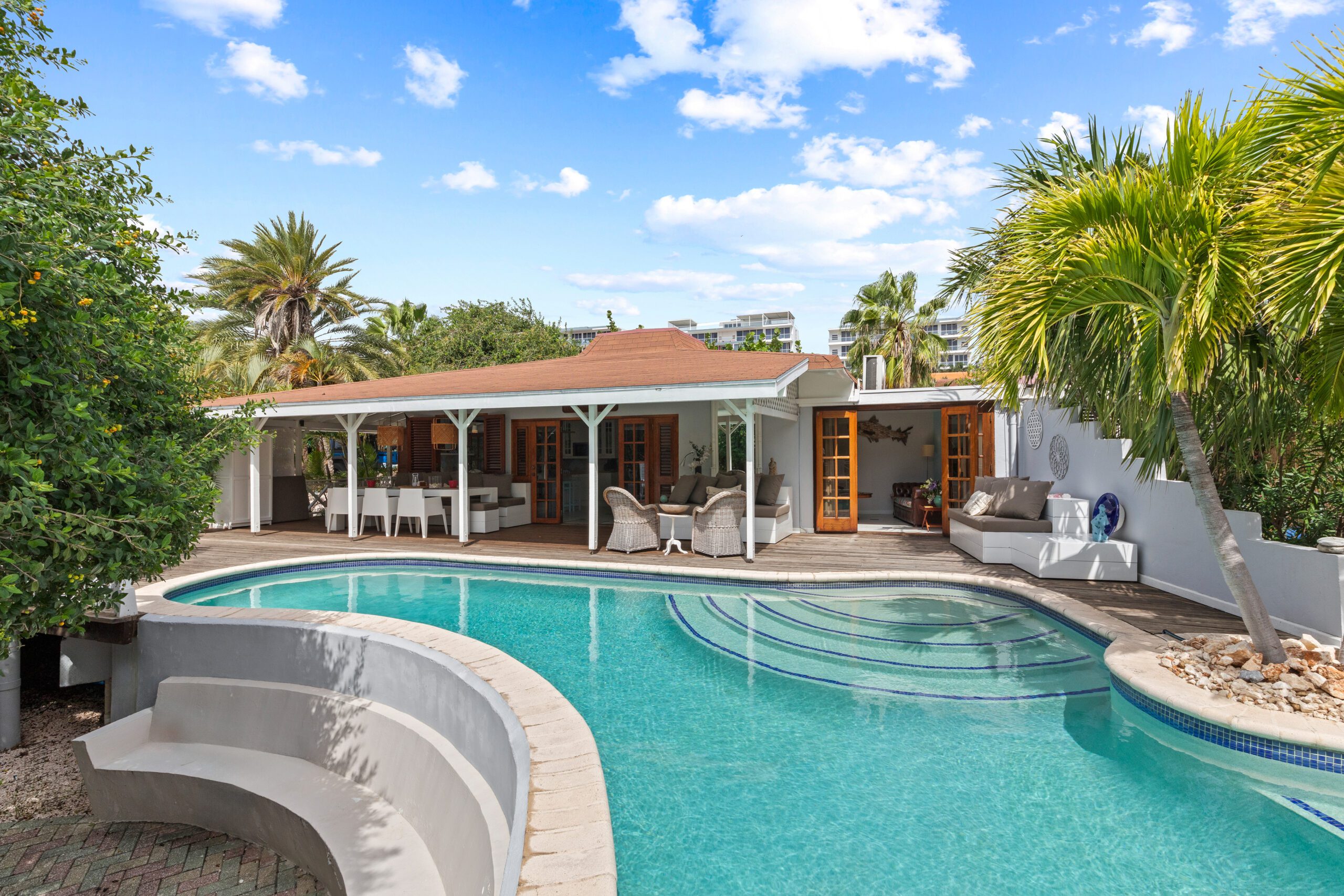 Within walking distance, you’ll find the charming Pirate Bay beach, where you can relax on soft sand and enjoy the refreshing ocean breeze. With four different restaurants nearby, you can indulge in a diverse culinary adventure, from local delicacies to international flavors. Additionally, our bungalow is close to the historic center of Willemstad, where you can stroll through cobblestone streets and admire the colorful architecture. Explore the lively markets, discover fascinating history, and soak in the vibrant atmosphere of this dynamic city.