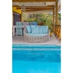 The villa’s location, within walking distance of the Caribbean Sea, not only offers a connection to the azure blue waters but also provides breathtaking sea views from the large veranda with various seating areas. Let yourself be enchanted by the lovely private pool, an oasis of refreshment and relaxation, perfectly situated amidst the lush surroundings.