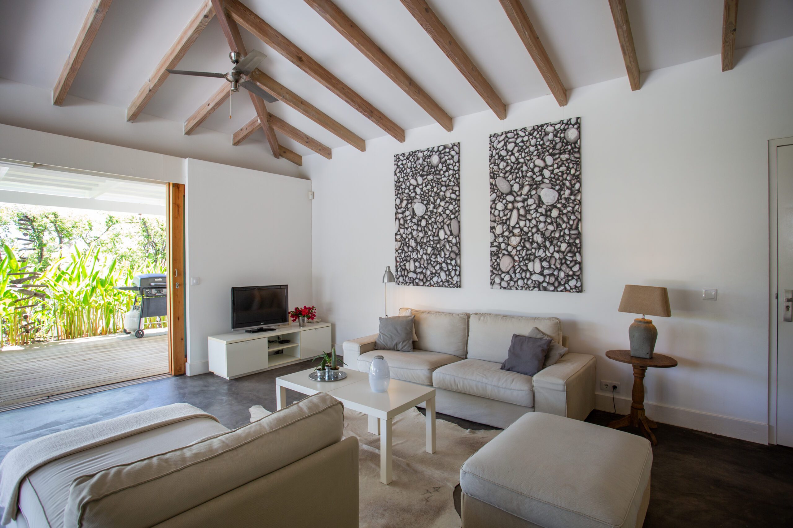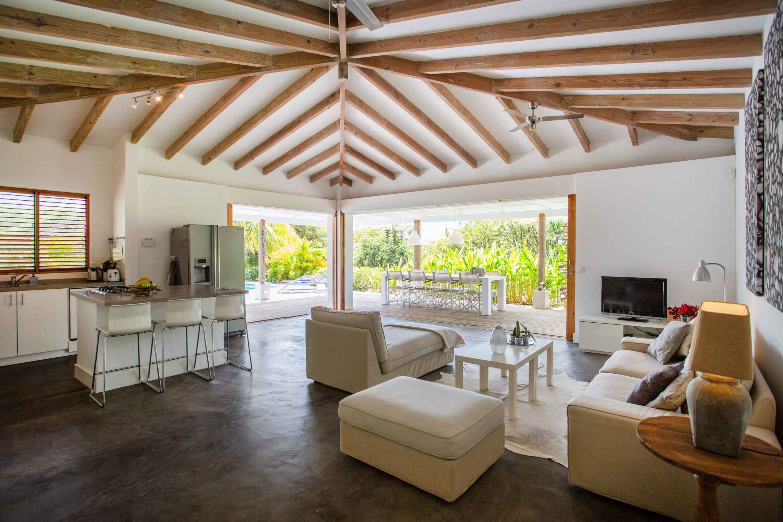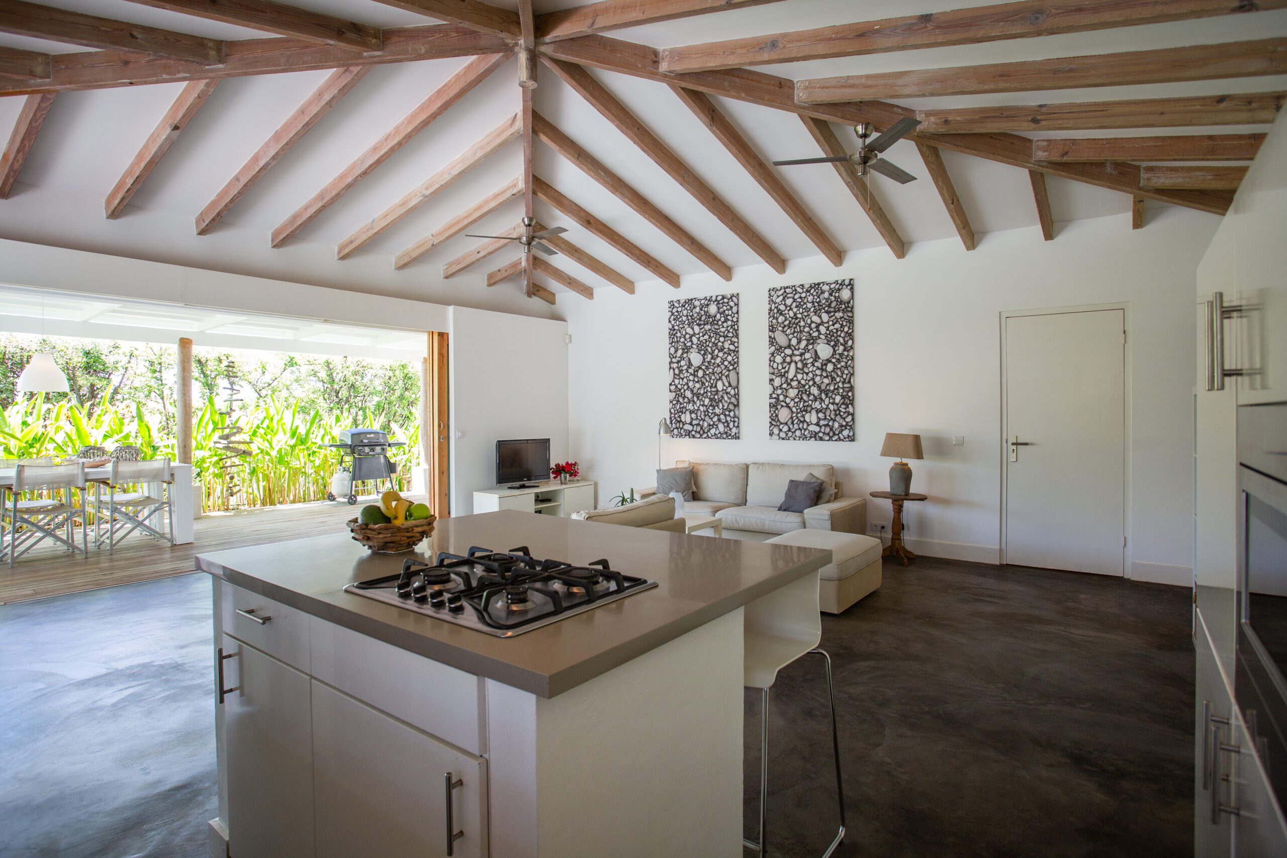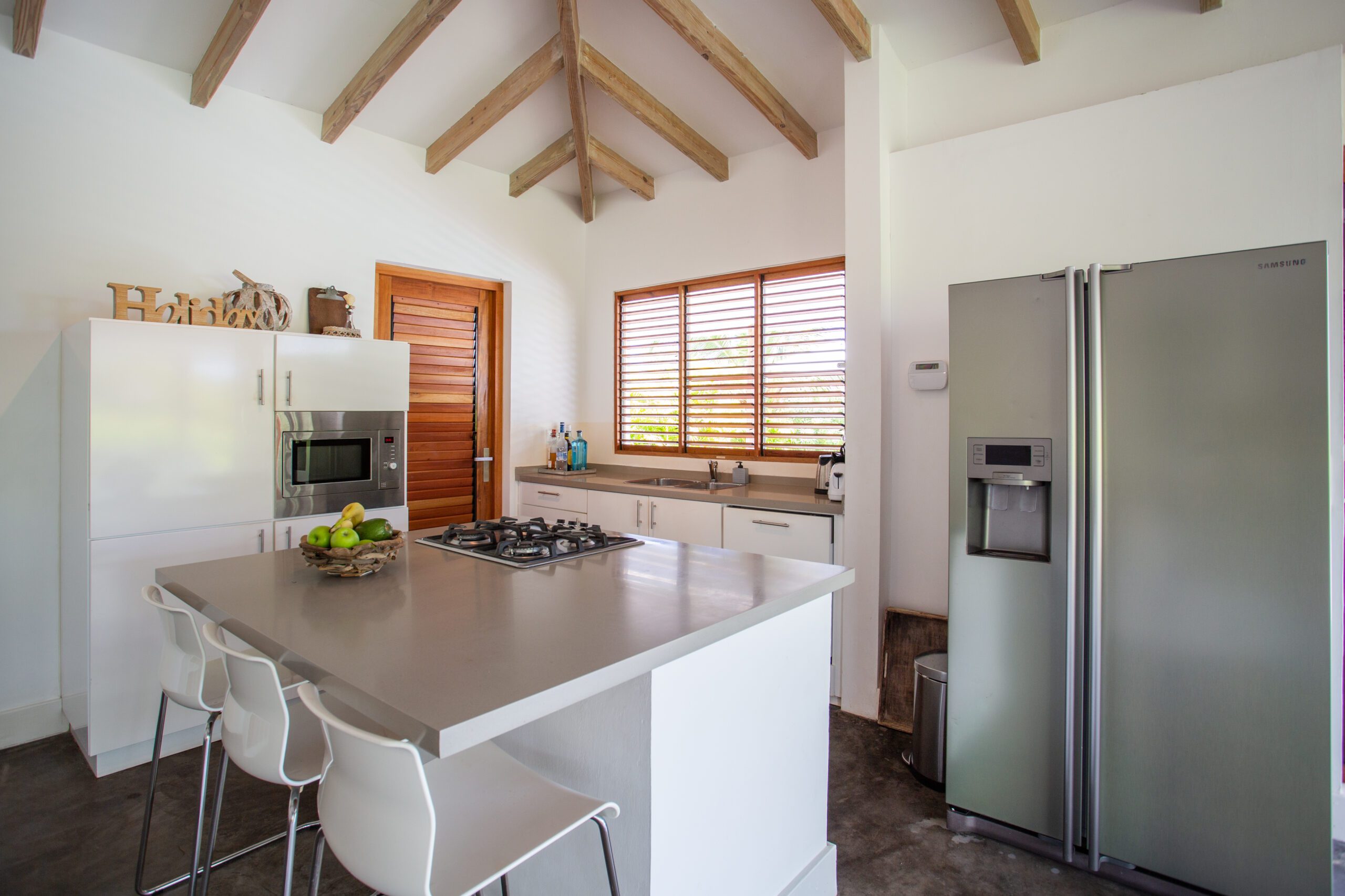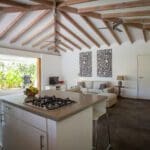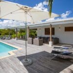 - Amenities: Tropical bungalow with swimming pool and ocean view, Large living room with spacious terrace and beautiful sea view, Smart TV, WiFi, Safe, Dishwasher, Coffee machine, Kettle, Washing machine, Sun terrace with outdoor shower, Airconditioning bedrooms, BBQ, Ceiling fan, Combi-oven met magnetron, Fridge freezer, Gas stove, Hair dryer, Iron, Iron board, Laundry rack, Nespresso, Sunbeds, Toaster