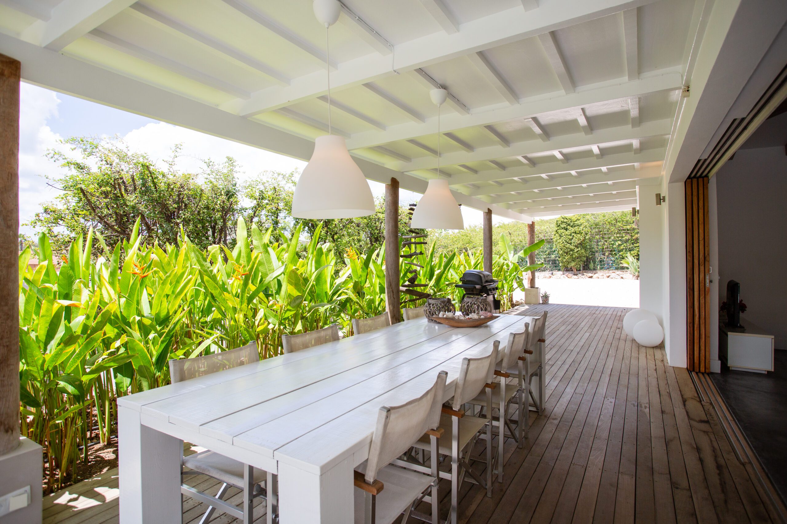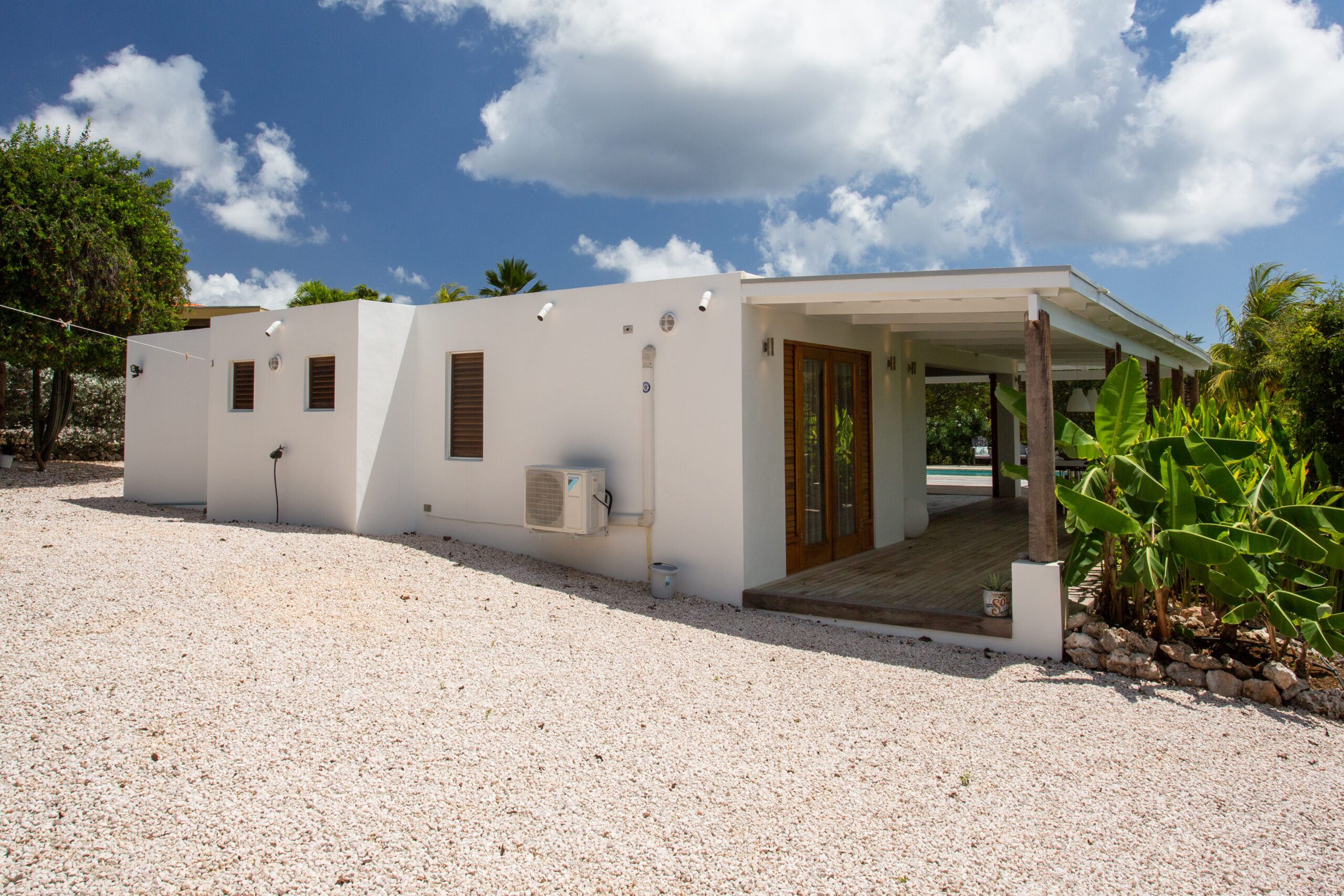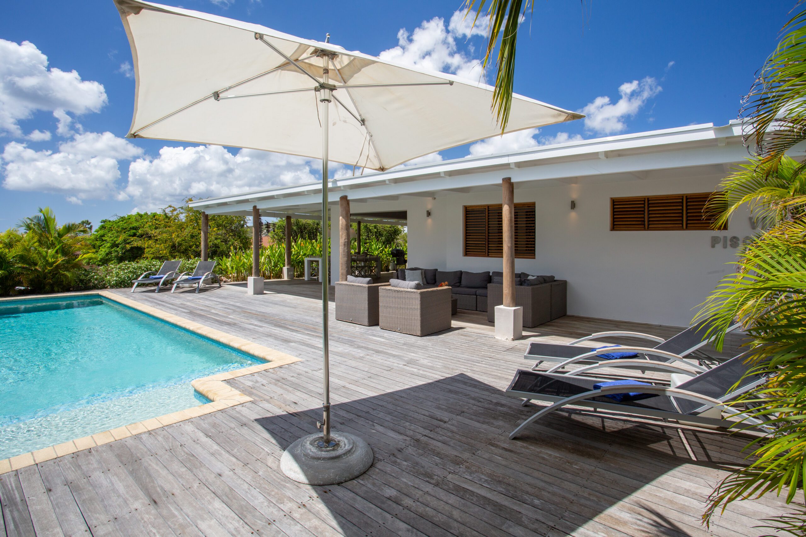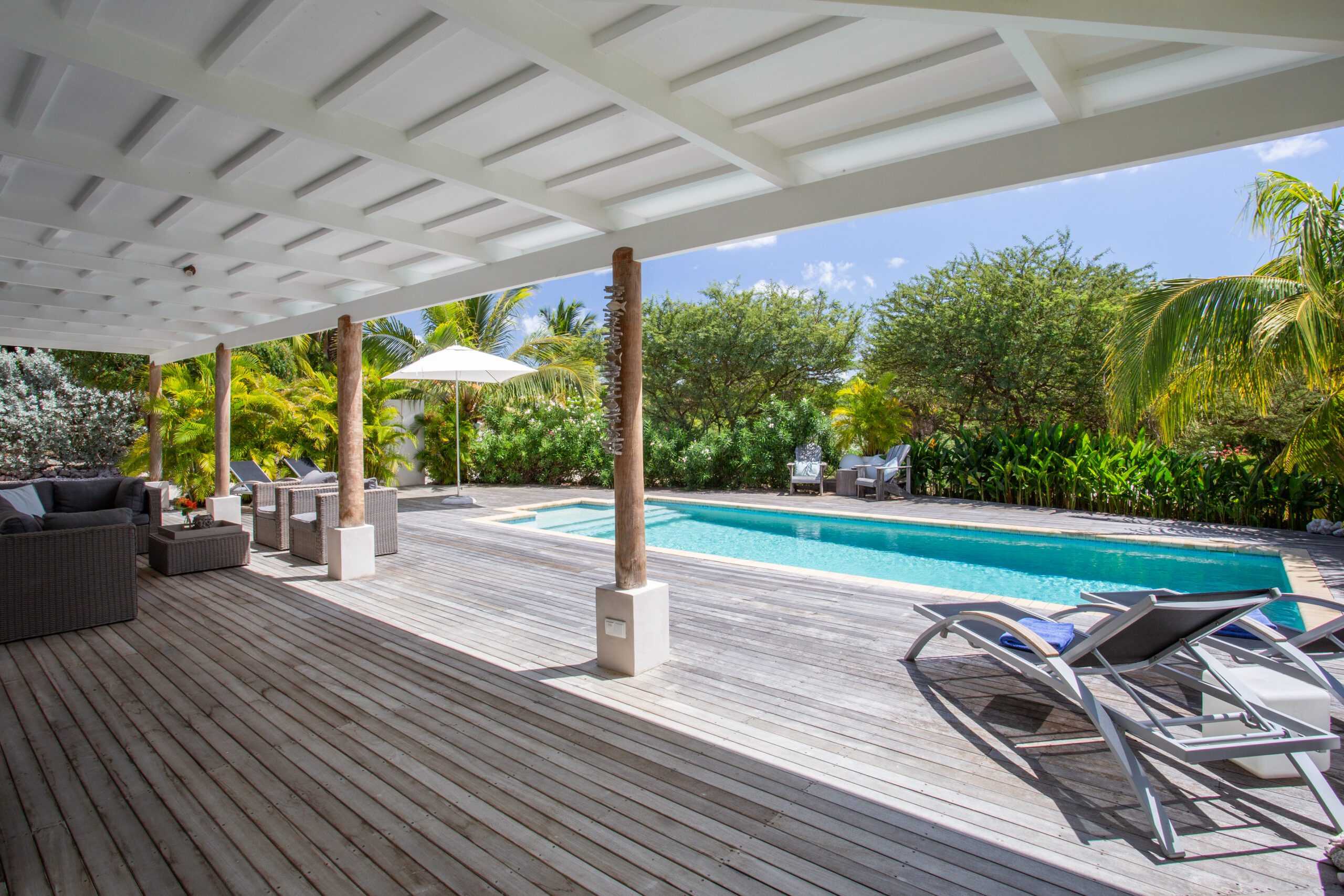 Back at the villa, unwind on our expansive veranda, perfect for lounging and soaking in the beautiful surroundings. The large pool, surrounded by a stunning pool deck, offers an oasis of refreshment and relaxation for those perfect holiday moments. Whether you opt for a day at the beach or an exploration of the historic streets of Willemstad, our villa provides a level of luxury and comfort that elevates your vacation to new heights.